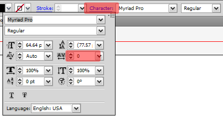 We start by selecting all the “Scuba Diving” text, and then we will go to our type properties, as shown below.   Hit the “Character” fly out menu, and then look for the Horizontal Tracking option.  You can set positive or negative values in here.  Negative values will decrease the space between letters, while positive values will increase the space.