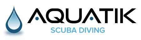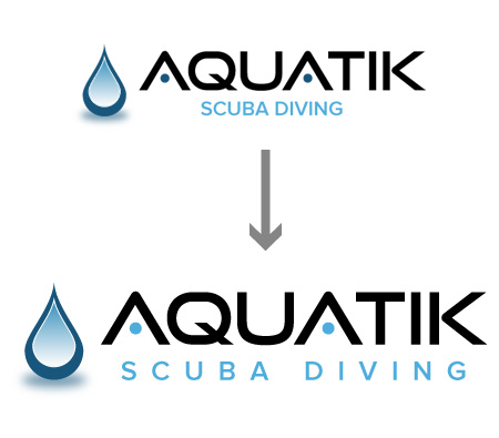 As you can see, we’ve given the text a smaller presence so that your eye has a logical flow to it. You see “Aquatik” first (your brand name), followed by what they do “Scuba Diving”.  Here is a before and after of our fictional logo to better illustrate.   Make sense?